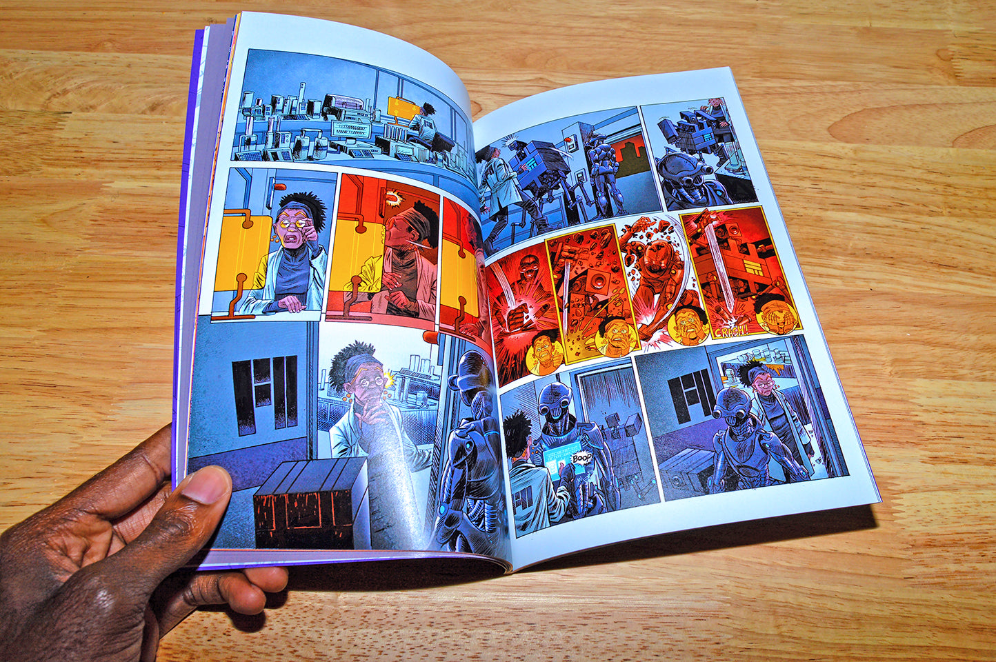 This 60+ page book has eight comic stories, with diverse art styles and topics. Here's a taste of what you can expect.